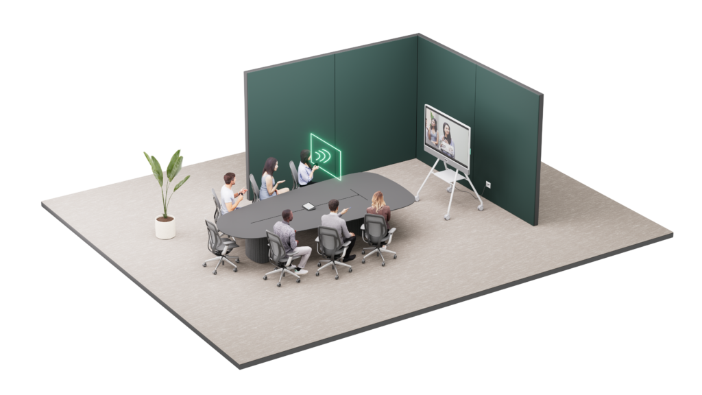 👉 Un gain d’espace : plus besoin d’encombrer la table de réunion avec des micros et enceintes externes