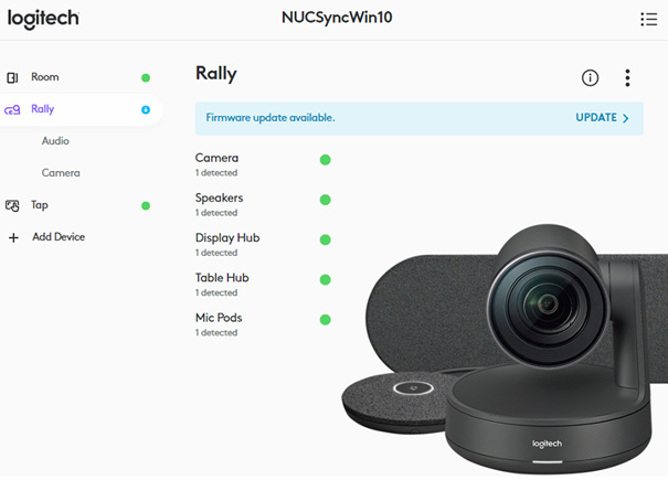 Dans la liste des appareils gérable par Sync vous retrouverez les dispositifs star de Logitech : Rally Bar, MeetUp, Scribe, TAP…