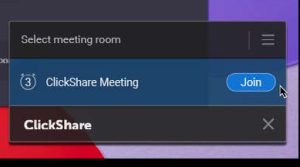 Vous avez une visio et vous êtes dans une salle équipée d'un ClickShare CX ? Lancez l'application ClickShare et rejoignez votre visio en 1 clic. Vous allez automatiquement profiter de la caméra et des haut-parleurs de la salle !