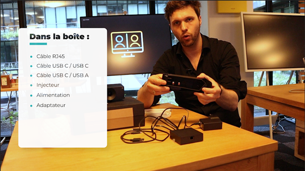- Un injecteur grâce auquel le courant "arrive" dans la Huddly L1, et sur lequel on vient connecter un ordinateur.