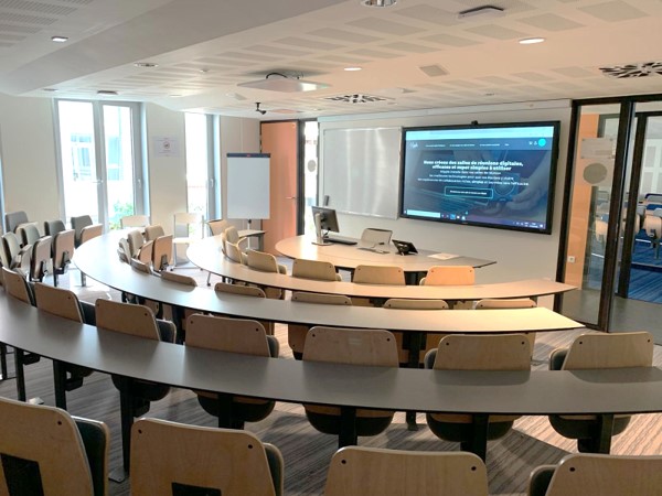 La escuela IESEG de Lille, una institución de renombre en el campo de la educación superior, cuenta con Wipple que transformará un hogar en un espacio híbrido inmersivo y tecnológicamente avanzado. El desafío consistía en ofrecer una pantalla para los estudiantes y otra para el profesor, integrando soluciones de videoconferencia y domótica al mismo tiempo para una experiencia de usuario óptima.